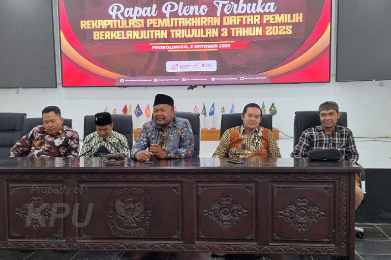 Kab-probolinggo.kpu.go.id, Kamis, 2-10-2025, Rapat Pleno terbuka Rekapitulasi Pemutakhiran Data Pemilih Berklelanjutan (PDPB) Triwulan III menetapkan 910.323 orang dari 24 Kecamatan dan 330 Desa/Kelurahan. Saat membuka Rapat Pleno, Aliwafa Ketua KPU Kabupaten Probolinggo menjelaskan dalam Pemutakhiran Data Pemilih Berkelanjutan (PDPB) terdapat data yang perlu “dibersihkan” dan kegiatan ini juga untuk menepis adanya anggapan bahwa KPU selesai Pemilu tidak ada pekerjaan, terangnya. Senada dengan hal tersebut, Lukman Hakim Ketua Divisi Perencanaan Data dan Informasi mengatakan dengan harapan bersih dari data kotor maksudnya data termutakhir se mutakhir mungkin. “Jadi dasar yang digunakan oleh KPU itu berdasarkan de Jure bukan de Facto” ucapnya. Lukman juga menambahkan bahwasannya KPU telah melaksanakan himbauan dari BAWASLU Kabupaten Probolinggo dengan menindaklanjuti meski terdapat data yang meninggal namun tidak ada surat keterangan, tambahya. Rapat Pleno terbuka Rekapitulasi Pemutakhiran Data Pemilih Berklelanjutan (PDPB) Triwulan III dihadiri oleh BAWASLU Kabupaten Probolinggo, DISPENDUKCAPIL Kabupaten Probolinggo dan Rumah Tahanan Kelas II B Kraksaan. ....