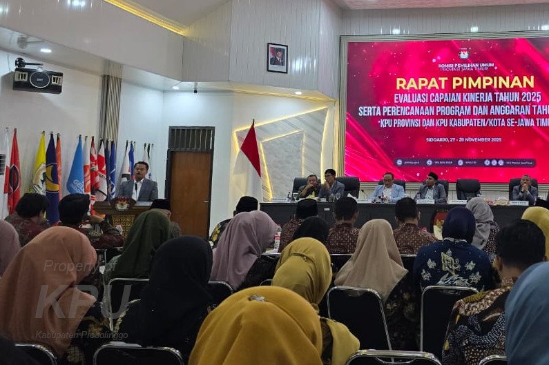 Kab-probolinggo.kpu.go.id, KPU Kabupaten Probolinggo mengikuti kegiatan Rapim (Rapat Pimpinan) di Aula lt.2 Kantor KPU Kabupaten Sidoarjo yang diselenggarakan oleh KPU Provinsi Jawa Timur. Hadir dalm kegiatan tersebut Ketua, Anggota dan Sekretaris bersama KPU Kabupaten/Kota se-Jawa Timur. Saat membuka acara, Ketua KPU Jawa Timur, Aang Kunaifi sekaligus memberikan apresiasi kepada seluruh komisioner KPU kabupaten/kota atas dedikasi dan kerja keras yang telah ditunjukkan sepanjang tahun 2025. Dengan berbagai tantangan yang telah dilalui, ia menilai penyelenggara pemilu di Jawa Timur mampu melewati proses tersebut berkat kerja bersama yang solid dan berkesinambungan, tambah Aang Kunaifi dihadapan para peserta Rapim. ....