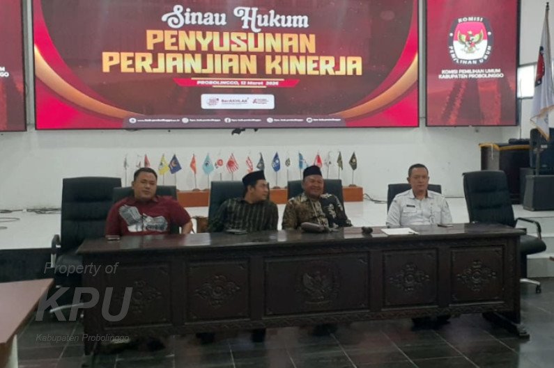 Kab-probolinggo.kpu.go.id, Kamis, 12 Maret 2026 Komisi Pemilihan Umum Kabupaten Probolinggo menggelar agenda Sinau Hukum dengan tema "Penyusunan Perjanjian Kinerja" yang diadakan di aula Sekretariat KPU Kabupaten Probolinggo. Kegiatan Sinau Hukum pada sesi ke 3 tahun 2026 ini dikoordinasi oleh Kasubbag Perencanaan Data dan Informasi (Rendatin) dan staf sebagai pematerinya. Tepat pukul 10.00 WIB dengan penuh semangat kegiatan ini dimulai dan dihadiri oleh Ketua dan Anggota KPU Bersama Sekretaris yang didampingi oleh Seluruh Kasubbag beserta seluruh Staf hadir secara lengkap meski dalam suasana puasa Ramadhan. Aisyah Januar Barokah selaku pemateri dalam kegiatan sinau hukum sesi ini menyampaikan bahwa "untuk mencapai tujuan akuntabilitas, transparasi dan efektifitas kinerja organisasi maka perlu disusun dokumen kesepakatan antara pimpinan dan bawahan guna mewujudkan sasaran strategis yang dimana hal tersebut sesuai Peraturan Presiden Nomor 29 Tahun 2014 tentang Sistem Akuntabilitas Kinerja Instansi Pemerintah (SAKIP)" ....