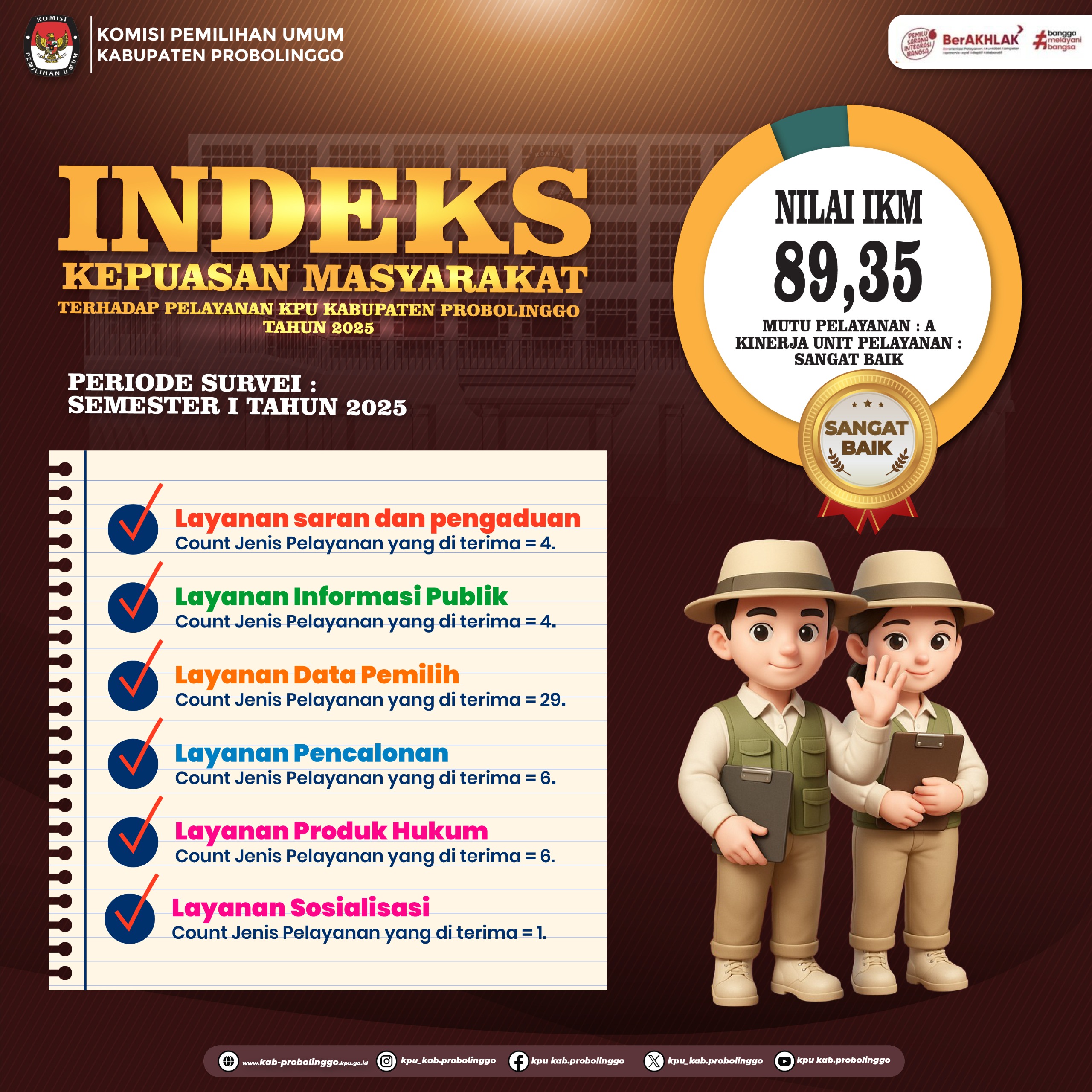 Kab-probolinggo.kpu.go.id, Senin, 6-10-2025, Ketua KPU Kabupaten Probolinggo, Aliwafa didampingi Hendra Bahana selaku Sekretaris mengikuti Rapat Evaluasi Capaian Kinerja Triwulan III Tahun 2025 yang dilaksanakan oleh KPU Provinsi Jawa Timur bersama 37 KPU Kabupaten/Kota Se-Jawa Timur. Aang Kunaifi selaku Ketua KPU Jatim memberikan akan pentingnya peningkatan pelaksanaan SAKIP (Sistem Akuntabilitas Kinerja Instansi Pemerintah) pada setiap satuan kerja. Tidak hanya, Aang Kunaifi juga mendorong agar masa non-tahapan dimanfaatkan untuk melakukan inovasi dan memperkuat komunikasi public, tambahnya. Selanjutnya pada kesempatan yang sama Miftahur Rozaq, selaku Divisi Perencanaan dan Logistik KPU Provinsi Jawa Timur, memberikan apresiasi atas capaian nilai SAKIP BB seluruh KPU Kabupaten/Kota di Jawa Timur, dengan kisaran nilai 70.8 sampai dengan 76.56, ucapnya. Selain itu, Ia juga mengingatkan pentingnya evaluasi kinerja secara berjenjang dan pengisian instrumen supervisi logistik, tambahnya. ....