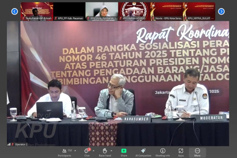 Kegiatan Rapat Koordinasi Sosialisasi Peraturan Presiden Nomor 46 Tahun 2025 tentang Perubahan Kedua atas Peraturan Presiden Nomor 16 Tahun 2018 mengenai Pengadaan Barang/Jasa Pemerintah diprakarsai oleh KPU Republik Indonesia dan KPU Kabupaten Probolinggo hadir melalui Zoom Meeting.