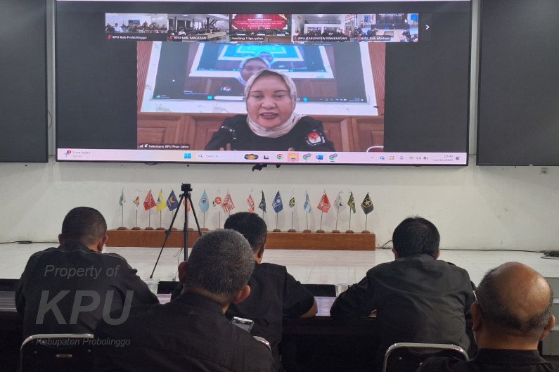 Sekretaris KPU Kabupaten Probolinggo, Hendra Bahana didampingi jajaran Kasubbag dan seluruh staf hadir mengikuti kegiatan tersebut bersama 37 KPU Kabupaten/Kota se Jawa Timur yang digelar oleh KPU Provinsi Jawa Timur secara daring.