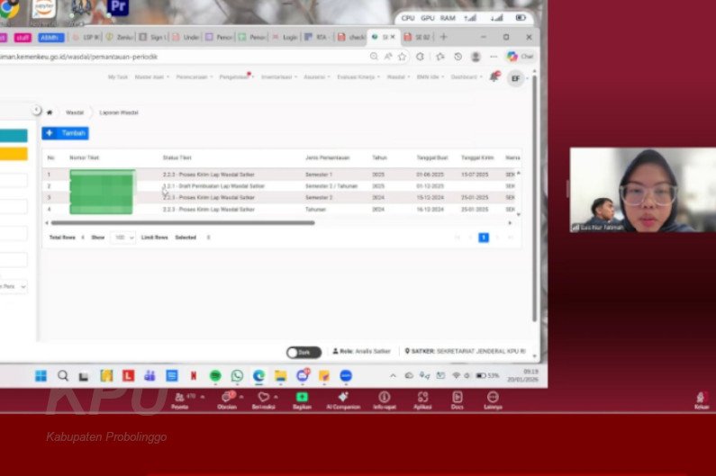 Kab-probolinggo.kpu.go.id, Selasa, 20-1-2026, Komisi Pemilihan Umum (KPU) Kabupaten Probolinggo hadir mengikuti kegiatan Bimbingan Teknis (Bimtek) Penyusunan Laporan Pengawasan dan Pengendalian BMN Semester II dan Tahunan Tahun 2025 di lingkungan KPU yang diselenggarakan oleh KPU Republik Indonesia melalui zoom meeting.