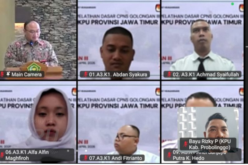 kab-probolinggo.kpu.go.id, Rabu, 4-2-2026, KPU Kabupaten Probolinggo mengikuti kegiatan Penandatanganan dan Perjanjian Kerja Sama antara KPU Provinsi Jawa Timur dengan Pusat Pengembangan Kompetensi (Pusbangkom) MKMB Kemenag Republik sekaligus Pembukaan Pelatihan Dasar (Lastar) CPNS KPU di Rumah Pintar Pemilu (RPP) Tengger melalui Zoom Meeting.