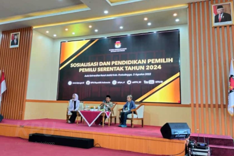 Kab-probolinggo.kpu.go.id, Rabu, 3-8-2022 Kegiatan Sosialisasi Dan Pendidikan Pemilih Pemilu Serentak Tahun 2024 di Universitas Nurul Jadid Paiton. Hadir dalam kegiatan tersebut Komisioner KPU Kabupaten Probolinggo dan jajaran Sekretariat serta para undangan. Saat memberikan sambutan, Lukman Hakim ketua KPU Kabupaten Probolinggo mengatakan bahwa Pemilu merupakan sarana kedaulatan rakyat berprinsip demokrasi Kami membuka peluang kepada semua pihak terutama kaum muda milenial untuk berpartisipasi menjadi penyelenggara Pemilu, jelasnya. Diwaktu yang bersamaan, Aminurokhman, Anggota Komisi II DPR RI sekaligus sebagai narasumber mengungkapkan Pemilu harus dilaksanakan secara LUBERDIL (Langsung, Umum, Bebas, Rahasia, Jujur dan Adil), ungkapnya. Dalam Pemilu Serentak 2024 kita akan memilih Anggota DPR, DPRD Provinsi, DPRD Kab./Kota, DPD dan Presiden dan Wakil Presiden, tambahnya. Sementara itu Jojo Rohi, Deputi Sekjen KIPP menyoroti akan pentingnya sinergitas antar penyelenggara Pemilu, Peserta Pemilu dan Pemerintah. "Bisa dibilang kerja KPU ini cukup berat, karena KPU itu tidak hanya melayani Peserta Pemilu namun juga Pemilih yang nota bene selalu memunculkan persoalan. Contohnya terkait data pemilih saja ini pasti muncul persoalan. Sampai-sampai istilah DPT diplesetkan menjadi Daftar Persoalan Tetap," ujarnya.