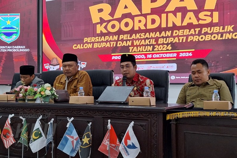“KPU telah melakukan koordinasi dengan berbagai pihak termasuk dengan KPU Provinsi Jawa Timur” terang Aliwafa, Ketua KPU Kabupaten Probolinggo saat membuka acara Rapat Koordinasi persiapan Debat Publik bersama FORKOPIMDA, BAWASLU Kabupaten Probolinggo dan Tim Pasangan Calon Bupati dan Wakil Bupati Probolinggo. Rabu,16-10-2024.