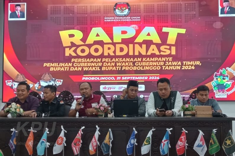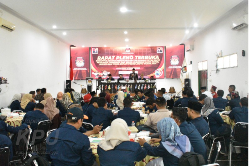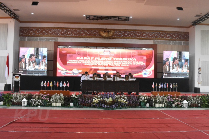 Kab-probolinggo.kpu.go.id, Senin, 23-9-2024, Aliwafa Ketua KPU Kabupaten Probolinggo pimpin langsung kegiatan Rapat Pleno Pengundian Nomor Urut Pasangan Calon Peserta Pemilihan Bupati dan Wakil Bupati Probolinggo tahun 2024 yang didampingi oleh Jajaran Komisioner di Gedung Islamic Center Kota Kraksaan. Turut hadir dalam kegiatan Pengundian Nomor Urut Paslon Partai Politik Pengusung, FORKOPIMDA, Dinas/Instansi terkait, BAWASLU Kabupaten Probolinggo, ORMAS (Organisasi Kemasyarakatan) dan LSM (Lembaga Swadaya Masyarakat) serta Para Simpatisan atau Pendukung Kedua Pasangan Calon dan PPK (Panitia Pemilihan Kecamatan). Pj Bupati Probolinggo, Ugas Irwanto saat memberikan sambutan mengatakan bahwa kegiatan Pengundian Nomor Urut ini merupakan kegiatan yang ditunggu karena dari sini Pasangan Calon mulai mensosialisasikan kepada masyarakat, ungkapnya. Untuk ia mengajak kepada seluruh warga Kabupaten Probolinggo aga tidak golput saat pemilihan tanggal 27 November 2024, tambahnya. Aliwafa selaku Ketua KPU Kabupaten Probolinggo juga mengingatkan agar selama pelaksanaan Pemilihan sama-sama menjaga kondusifitas sehingga Pemilihan dapat berjalan dengan lancar, aman dan penuh dengan riang gembira, tuturnya.