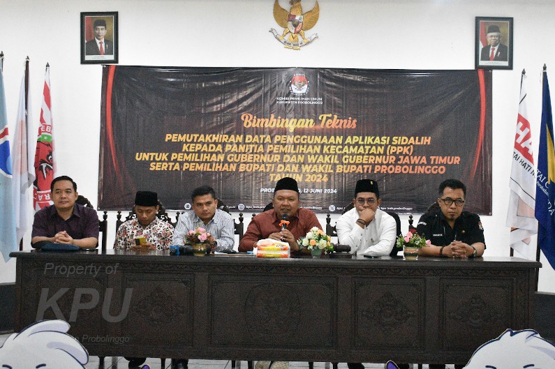 Kab-probolinggo.kpu.go.id, Rabu, 12-6-2024, Komisi Pemilihan Umum (KPU) Kabupaten Probolinggo melakukan kegiatan Bimbingan Teknis Pemutkahiran Data Penggunaan Aplikasi SIDALIH (Sistem Informasi Data Pemilih) kepada Panitia Pemilihan Kecamatan (PPK).