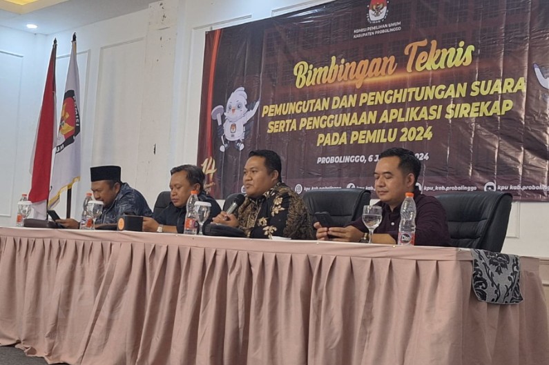 Kab-probolinggo.kpu.go.id, Rabu, 7-2-2024, Saat mengisi kegiatan BIMTEK (Bimbingan Teknis) Rekapitulasi Hasil Penghitungan Suara ditingkat Kecamatan bersama PPK (Panitia Pemilihan Kecamatan), Agus Hariyanto Andinata, Ketua Divisi Teknis Penyelenggaraan, KPU Kabupaten Probolinggo menjelaskan tugas PPK.