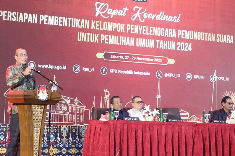 Kab-probolinggo.kpu.ho.id, Selasa, 28-11-2023, Dalam kegiatan Rapat Koordinasi Persiapan Pembentukan Kelompok Penyelenggara Pemungutan Suara (KPPS), Ketua KPU Hasyim Asy’ari menekankan beberapa hal yang penting kepada KPU Provinsi, KPU Kabupaten/Kota sehingga saat perekrutan berjalan secara maksimal.
