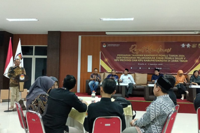 Kab-probolinggo.kpu.go.id, 6-7 Agustus 2023 KPU Provinsi Jawa Timur menggelar rapat koordinasi persiapan tahapan kampanye pemilu tahun 2024. Pada kesempatan tersebut, Ketua KPU Jawa Timur, Choirul Anam menyampaikan bahwa PKPU 15 2023 sudah terbit. Divisi Sosdiklih Parmas diminta menguasai regulasi terkait kampanye. Ada beberapa hal yang harus dikuasai. Divisi diminta membuka arsip terkait penempatan alat peraga kampanye.