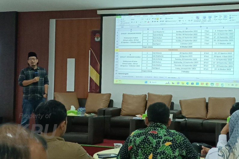 Sebagai perwakilan dari KPU Kabupaten Probolinggo, hadir Ketua Divisi Sosdiklih, Parmas dan SDM, Aliwafa, Sekretaris, Hendra Bahana dan Kasubbag Teknis dan Hupmas, Domenicus Widji Nugroho.